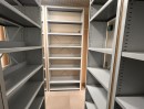 Спроектировали оптимальную конфигурацию расстановки стеллажей, которая позволила увеличить вместимость без нарушения требований безопасности. Изготовили и установили в книгохранилищах: стационарные полочные стеллажи со сплошной боковой стойкой серии СА— односторонние конструкции вдоль стен; двухсторонние по центру помещений для максимального использования площади, с лицевыми панелями под дерево (ЛДСП). В хозяйственных помещениях: помимо полочных стеллажей, комбинированный стеллаж: закрытая секция с дверями + секция со штангой.