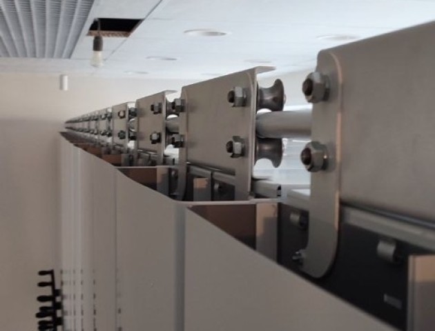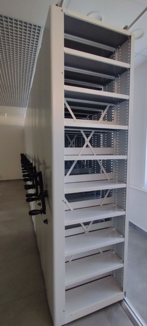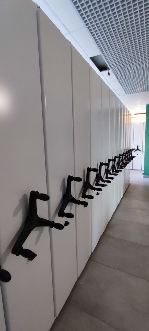 Из-за значительной высоты стеллажей – 2040 мм и при малой ширине секций были установлены специальные антиопрокидыватели, обеспечивающие устойчивость и безопасность персонала при выдвижении секций.