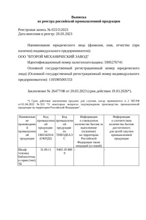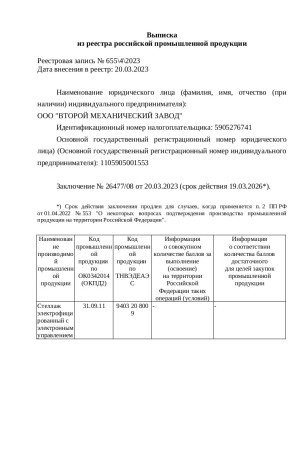 Мы рады сообщить, что получили выписку из реестра Минпромторга. Вся наша продукция Российского производства.