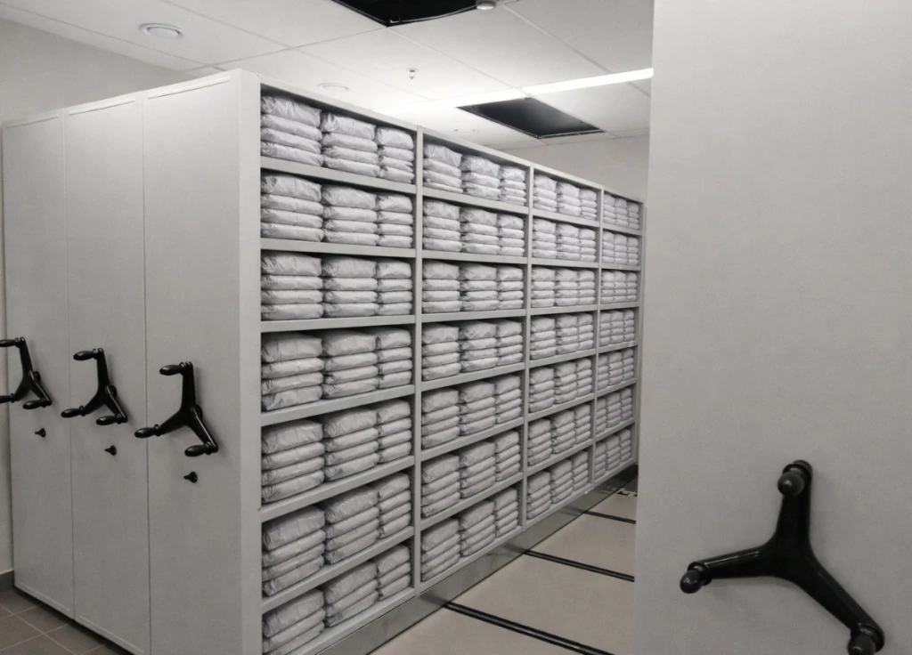 Оптимальное решение для ограниченного пространства при большом объёме хранения. Подвижные ряды увеличивают вместимость помещения в 2 раза, что удобно для крупных складов и цехов с небольшой площадью.